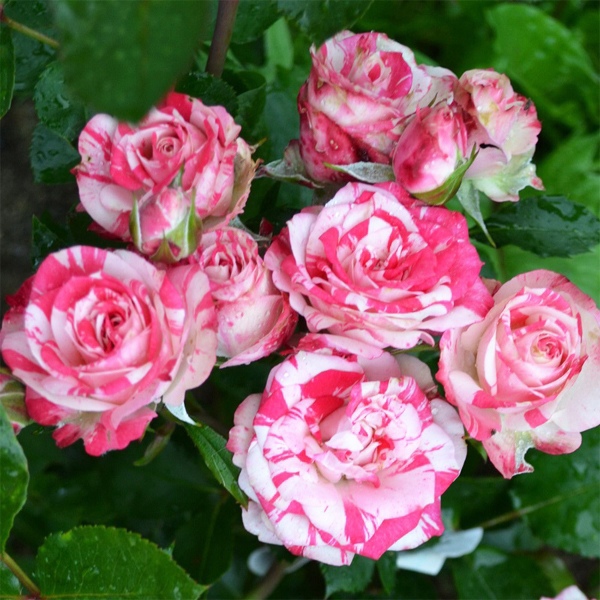 Этот куст розы Файерворкс (Fireworks) действительно напоминает яркий фейерверк благодаря своим пёстрым малиново-белым цветкам. Цветочные кисти, состоящие из 4-5 бутонов, украшают сад всё лето, создавая эффект "зажжённых" огоньков. Цветки диаметром около 3 см распускаются до самых заморозков и не боятся дождя, что делает этот сорт идеальным для создания бордюров, клумб и жизнерадостных букетов.