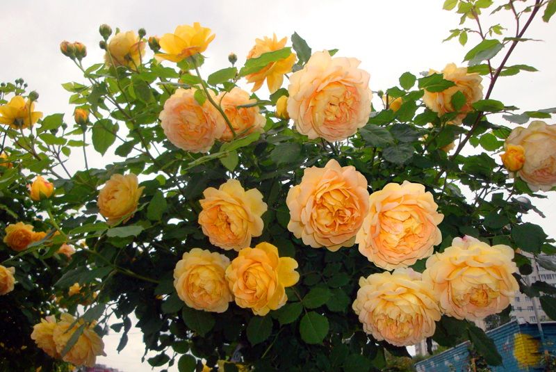 Эта английская роза отличается крупными, шаровидными цветками, которые изящно свисают на ветвях. Цвет лепестков медно-желтый, что является редкостью для английских роз. При детальном рассмотрении можно заметить множество мелких розовых точек на насыщенно-желтом фоне, создающих уникальный эффект. Аромат цветков сильный и приятный. Роза обладает высокой устойчивостью к заболеваниям, что делает её превосходным выбором для любого сада. Этот сорт, созданный Дэвидом Остином, быстро растет и формирует крупный куст. При правильном уходе цветет обильно и продолжительно. В жарком климате может выращиваться как невысокая плетистая роза.